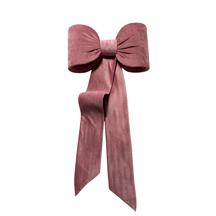 Material consistent: Catifea groasă care oferă volum și o cădere fluidă panglicilor.