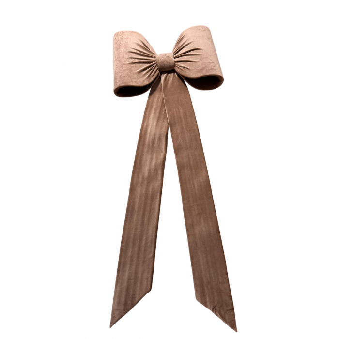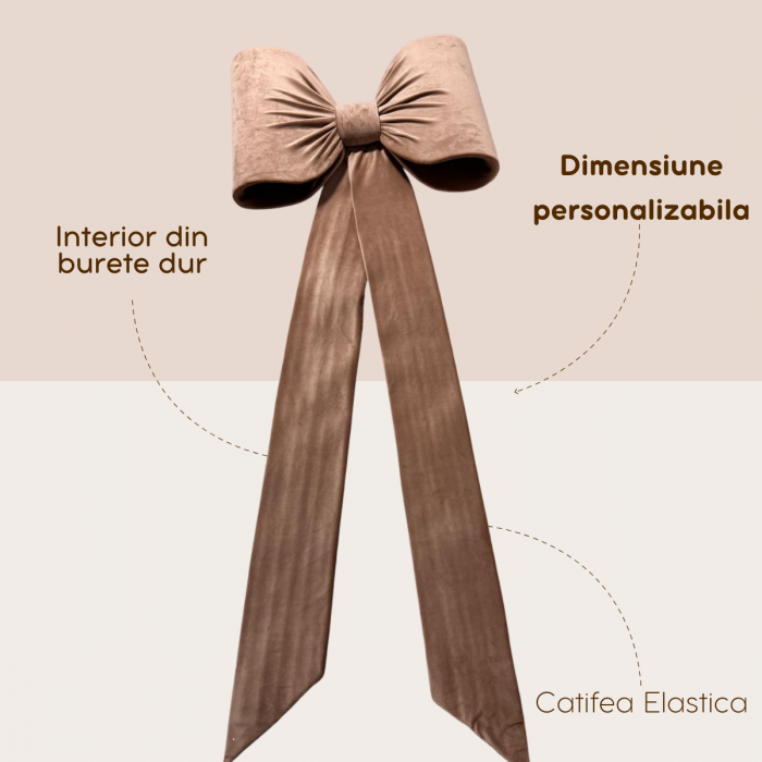 Material consistent: Catifea groasă care oferă volum și o cădere fluidă panglicilor.